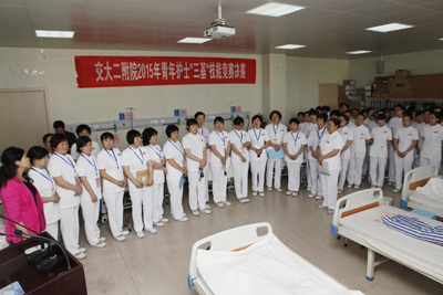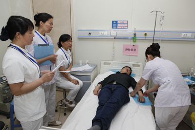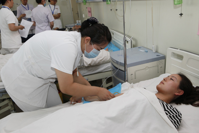 本次竞赛以大内科片区、大外科片区、妇儿传片区、门急诊片区、眼耳皮烧伤片区、干部病房片区划分为8组,经过3月至4月的科室初赛及片区复赛,每个片区推选3人参加决赛。竞赛采取两项护理基础操作技能及理论知识考核三项成绩进行综合考评。静脉输液为必考项目,另外一项操作由参赛者现场抽取;理论知识考核主要倾向于护理基础操作中常见的并发症及处理方法等,考察护士的应变能力。