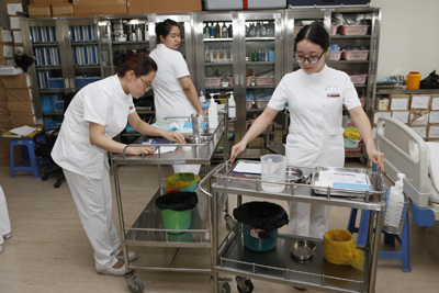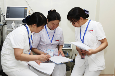 护理部刘红梅副主任、孔德玲副主任在现场紧张的工作