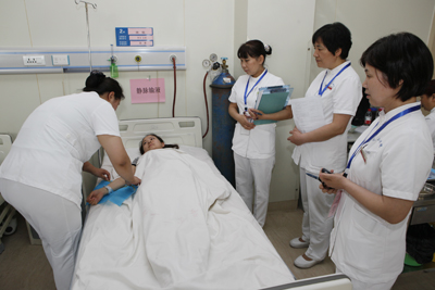 青年护士分成8组参加竞赛