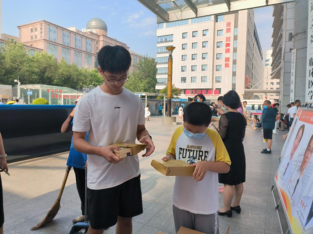 骄阳如火,热辣的温度丝毫没有影响医务人员的献血热情,全院教职员工积极响应。上午9时,刚刚完成晨交班,前来参加献血活动的医务人员已陆续完成了献血前准备工作,在车内等待献血,献血结束,她们顾不上过多休息,又匆匆赶回科室,开始新一天的繁忙工作。献血队伍里,既有朝气蓬勃的年轻力量,也有鬓发花白的资深教授;既有我院临床医技党政后勤教职员工,也有实习生、进修生、后勤服务人员。党员干部群众,用热血谱写医生大爱与医者仁心,用实际行动诠释党员使命和担当。医二代“医小苗”们也积极参与到无偿献血志愿者工作中来,协助登记献血人员、发放慰问品,学着长辈们的模样,为大家服务,探寻医者荣光。