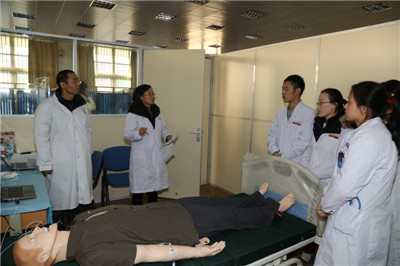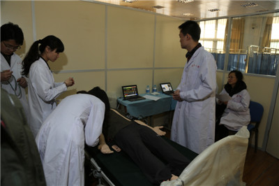 本次考试首次使用了我院最新购置的挪度3G模拟人系统,通过计算机程序设定模拟人为特定疾病状态,模拟临床工作真实场景,将考生分组,采取考官现场测评的方式,考查学生的临床诊疗思维、相关技能操作及团队协作能力,这种新颖的考核方式获得了老师和学生的一致好评。
