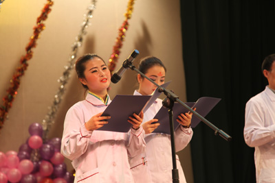 联谊会展示了十九个精彩的节目,通过舞蹈、相声、歌唱、诗朗诵等形式向大家展示着门诊工作人员多才多艺的生活爱好。诗朗诵《我们为“门诊人”代言》通过对门诊导医、门诊挂号收费、门诊药房和门诊服务中心工作人员工作状态的贴切表述,深情述说了“门诊人”在平凡工作岗位上的辛劳和工作背后所付出的努力和情感,虽然我们不能像医生那样用最直接方式减轻患者的病痛,但是我们却用我们最真挚的心服务着每一位患者,希望能够通过我们“门诊人”特有的方式缓解患者的焦急和痛楚。