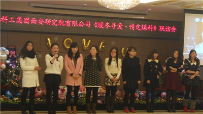 院团委继2014年12月19日组织“爱暖深冬•缘来是你”大型青年联谊活动广受好评后,又受邀于12月28日组队参加中煤科工集团西安研究院有限公司组织的“暖冬寻爱•情定煤科”联谊活动。本次活动共设40对男女生席位,我院团委书记董艳带队,共组织了13位单身女青年前往煤科宾馆参加活动。