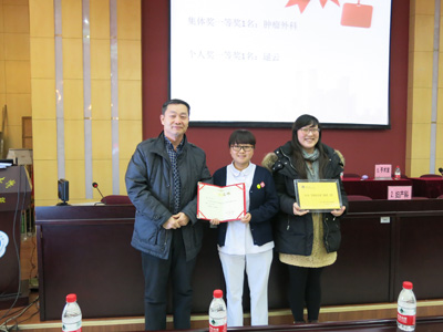 “医保知识竞赛”决赛由复赛前六名的6个部门代表队肿瘤外科、门诊部、小儿内科、手术室、普外科、妇产科共18人参加比赛,医保合疗办新农合组组长张博文和审核组组长孙瑜承担竞赛主持,竞赛以科室为单位抢答答题为主,竞答现场紧张而有序,气氛非常热烈。参赛选手个个胸有成竹、镇定自若,面对提问,对答如流,博得了观众阵阵掌声。在观众互动环节,台下观众都踊跃地举手积极回答问题,现场的气氛达到了高潮。经过紧张激烈的角逐,肿瘤外科代表队荣获医保知识竞赛集体一等奖,小儿内科、门诊部代表队荣获集体二等奖,普外科、手术室、妇产科代表队荣获集体三等奖,耳鼻喉科、皮肤科、神经外科、中医科代表队荣获集体优秀奖。普外科逯云获得医保知识竞赛个人一等奖,普外科白育花、眼科赵敏获得个人二等奖,手术室张红、肿瘤外科包兴、手术室马晓颖获得个人三等奖,小儿内科井亚丽、财务部钱铖、门诊部李兴利、神经外科高炀、中医科赵悦、耳鼻喉科罗花南获得个人优秀奖。高亚副院长和评委组为获得荣誉的科室和个人颁奖,并向他们表示祝贺。