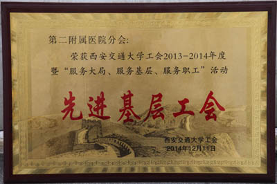 由我院工会推选的第一、第二、第三、第六、第十部门工会获得西安交通大学2013-2014年度先进部门工会,李璞等5人被评为优秀工会干部,白丽平等12人被评为优秀工会积极分子。