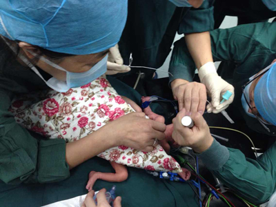 由于早产儿呼吸功能不稳定,容易发生呼吸暂停,存在生理性返流,而病理性的返流可能导致窒息、喉痉挛等危及生命,所以气道保护尤为重要。同时早产儿支气管肺发育不良氧储备极差,又具有难以预料的困难气道,给麻醉带来了极大的风险。经过儿外李鹏教授,麻醉科李芳教授,新生儿科王惠萍教授等相关科室会诊,大家群策群力纷纷提出各自的见解,决定马上行手术治疗。手术室立即开始了繁忙而有序的准备工作,提前准备手术台保温毯预热以及升高室内温度,使用麻醉科最先进的麻醉机以提供最低20ml的极低潮气量、新生儿的专用氧饱指套,以及各类抢救药物。下午2点,准备开始手术麻醉。在李芳教授的带领下,雷晓鸣.宋正川教授等众多麻醉医师的团结协作下顺利插管,在麻醉医生的精心监护下手术历时2小时,术中出血10ml,手术顺利完成。