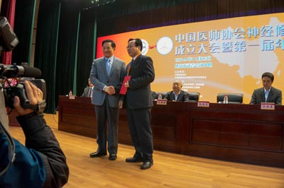 中国医师协会神经修复学专业委员会成立大会暨第一届年会于2014年11月22-23日在北京召开。此次会议由中国医师协会与神经修复学专业委员会共同主办,由西安交通大学第二附属医院、武警总医院、北京军区总医院、天津医科大学总医院、中国康复研究中心/博爱医院、海军总医院、新乡医学院第一附属医院、解放军第148中心医院共同承办,国家卫计委刘谦副主任出席会议,来自全国各地神经内外科、骨科、儿科、康复等神经修复学相关学科的临床医生和基础研究人员600人与会。我院骨二科王栋副教授当选为委员会副总干事,中国医师协会张雁灵会长、中国工程院郑静晨院士、国际神经修复学会创始主席黄红云博士、专业委员会首届主委贺西京教授分别致辞。