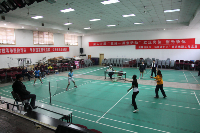 我院职工裴斐、吴刚、管齐飞、王玉虎、毛文斌、陈旭、刘乐、张三鹏、袁晓红、赵萍等参加了比赛。整场比赛高潮迭起,第三盘男双第三局更是打到30:28才分出胜负,为现场观众呈现了一场高水平、高质量的比赛。