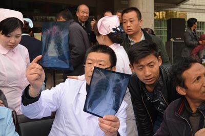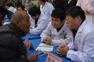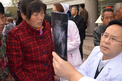 签约揭牌仪式后,我院专家团队举行了盛大的义诊活动,不畏凛冽的寒风,我们的教授为病人耐心细致的诊断和解说,先后共接诊患者达600人次,发放宣传资料1000余份。让韩城的老百姓真正得到实惠和温暖;并现场与该院的医生进行病例研讨和经验交流。