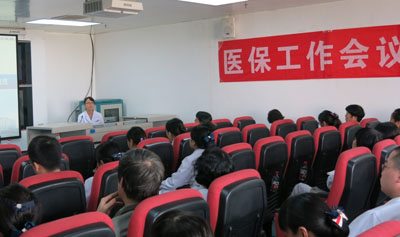 首先新农合组组长张博文从新农合技术转诊的政策规定、大病报销政策、意外伤害报销政策调整等方面为大家详细解读了新农合文件内容;医保审核组组长孙瑜从门诊恶性肿瘤放化疗操作规范以及门诊血液透析操作规范等方面详细介绍了西安市医疗保险门诊特殊病种操作规范。