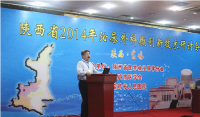 9月12-14日,由陕西省医学会泌尿外科学分会主办、我院泌尿外科协办、宝鸡市人民医院承办的“陕西省2014年泌尿外科微创新技术研讨会”在宝鸡市隆重召开。来自湖南、湖北、山西、甘肃、青海、宁夏及省内的泌尿外科专家和来自陕西各地的泌尿外科或外科医生350余人相聚宝鸡,共同探讨泌尿外科微创新技术的应用及发展。会议进行了高水平的学术讲座及手术演示。我院泌尿外科王子明教授、种铁主任、李和程副教授、张鹏副教授分别就医患关系、前列腺癌的腹腔镜治疗、腹腔镜肾切除关键问题、泌尿系结石诊疗指南解读等内容作精彩学术报告。种铁主任、李和程副教授进行了包括“腹腔镜下肾部分切除术”在内的手术演示。