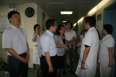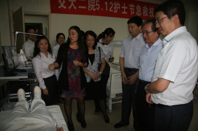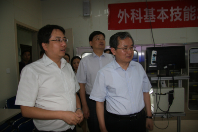 2014年9月13日下午,国家卫计委科教司金生国副司长、中国医师协会齐学进副会长、陕西省卫计委宣传科教处李建光处长、黄斌副处长一行莅临我院视察住院医师规范化培训基地情况。