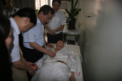 首先,党委书记韦俊荣教授对金司长一行的到来表示热烈欢迎,同时对卫计委和中国医师协会给予我院的支持和帮助表示感谢。副院长刘原教授就我院教学、医疗基本情况及住院医师规范化培训基地建设情况进行了专题汇报。金生国副司长认真听取汇报,对我院规培工作给予了充分肯定,强调住院医师规范培训是医学生毕业后教育的重要组成部分,对于培训临床高层次医师,提高医疗质量极为重要,占据了医学终生教育的承前(医学院校基本教育)启后(继续医学教育)的重要地位,是医学临床专家形成过程的关键所在,希望大家真正落实好此项工作并积极建言献策。我院相关科室领导从自身职能出发提出了对规培工作的建议,历届规培学员代表不仅和大家分享了参加规培的感受,也从切身实际出发提出了自己的意见。会后,刘原、李文典副院长及相关科室领导陪同视察组一行实地考察基地情况,在我院消化内科和皮肤病院,金司长考察了科室建设情况并抽查了部分实验室设备,对临床带教老师随机进行了提问,耐心听取了王进海副主任和肖生祥主任对于规培的工作汇报。金司长一行针对未来住院医师规范化培训发展方向、培训模式改革、师资队伍和基地建设,在此基础上继续建设专科医师培训基地等问题与视察科室人员进行了深入的沟通探讨。卫计委、中国医师协会领导对我院住院医师规范化培训基地报以殷切期望,希望我们能够在最好的医院、最好的专业,用最好的师资,培养出国家最好的临床人才!