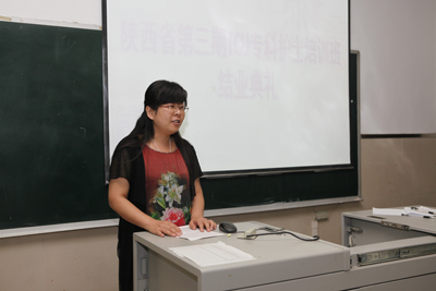 随后,来自咸阳市三原县的学员代表王静发言,讲述了自己在本次培训过程中的心得点滴。我院重症医学科王利护士长也做了简单的发言,感谢了每一位学员对培训班的支持,并表示每一次培训班其实都是教学相长的过程,我们同样能从学员身上学到许多知识和闪光点。