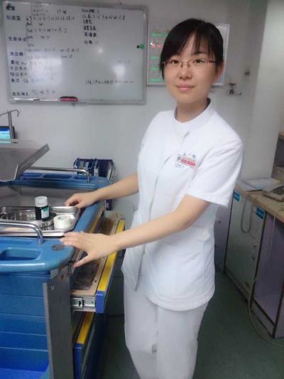 马琳在护理技能、心态方面总是以老师、以先进为镜,勤学苦练,全面提升自身的护理技能水平。在科室静疗小组举办的留置针比赛中,赛前她利用休息时间熟记操作流程,在模拟人身上不断地操作、反复的练习,不断巩固操作手法,力求做到优雅流畅;她还让同事给她设计各种工作中的场景来考验自己处理突发状况的应变能力。最终在比赛中她取得了第一名的好成绩。
