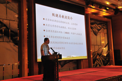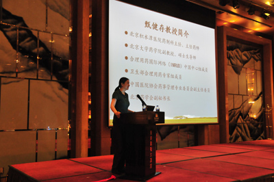 会议邀请了卫生部合理用药专家组成员、中国医院协会药事管理专业委员会副主任委员、北京市药学会副秘书长、北京积水潭医院药剂科主任甄建存教授做专题报告。甄教授以“处方点评与临床合理用药管理”为题,就目前临床合理用药管理现状、处方点评的重要性及如何开展处方点评工作、北京市处方点评开展情况等方面做了详细的报告。甄教授的报告为临床药师的工作开展提供了新的启发,为临床药师更好地参与临床合理用药拓宽了思路。