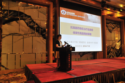会议下半场由席枝侠副主任主持。我院何爱丽主任医师作为大会邀请专家以“抗真菌药物在治疗血液病侵袭性真菌病的策略”为题,从血液病患者真菌感染的现状、诊断和治疗策略等方面做了深入的讲解,为血液病患者抗真菌药物的合理使用提供了指导。药剂科蔡艳主管药师就“抗真菌药物临床应用评价标准的建立”为题进行了汇报,提出了开展抗真菌药物临床应用评价的思路和方法。