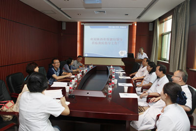 2014年8月8日上午,陕西省保健局医疗处贾文虎处长一行五人莅临我院干部病房检查指导工作。干部保健主管院长刘原副院长等陪同。贾处长一行深入各个病区,详细询问保健对象住院的医疗护理情况,看望了重点保健对象,同时对陕西省保健局出资为我院配置的医疗设备的使用情况进行检查。
