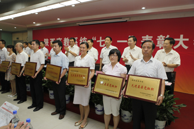 在会上,省教育厅厅长、省委高教工委副书记李兴旺宣读了表彰文件,省委高教工委决定对西北工业大学党委等15个先进基层党委、西安交通大学第二附属医院党委等46个先进基层党组织、顾蓉等124名优秀共产党员、陈红等59名优秀党务工作者予以表彰。我院党委是交大系统唯一一个受表彰的基层分党委,院党委书记韦俊荣代表我院党委接受省高教工委表彰和荣誉牌匾。这一表彰标志着我院党委工作又迈上了一个新的台阶。