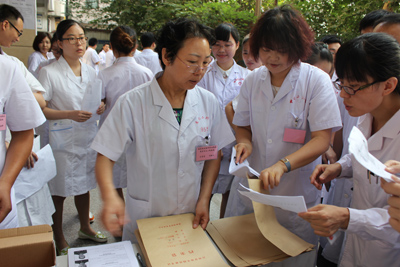7月5日、6日,全国执业医师实践技能考核西安交大二院基地考试工作在我院圆满完成。共有来自包括陕西省第二人民医院、陕西省妇幼保健院、陕西省中医医院等省直单位的447名考生(其中执业医师312人,执业助理医师135人)参加了此次考试。此次考试工作在院领导的大力支持下,在全体考官、工作人员的共同努力和有关科室的积极配合下顺利完成。