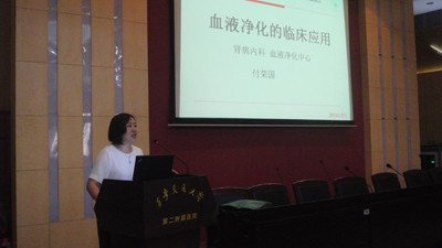 影像中心主任白芝兰教授针对“提高工作效率,缩短诊疗检查时间”关于影像中心的相关工作做了重要说明。付荣国教授和检验科主管技师张磊分别做了题为《血液净化的临床应用》、《D-二聚体的检测与应用》精彩的专题讲座,使大家更多的了解血液净化以及D-二聚体的检测与应用的相关知识。