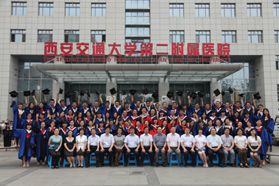 6月13日,二附院组织在二院学习的临床医学专业2014届全体本科、硕士、博士200余名毕业生在综合楼下广场参加了毕业合影留念活动,二附院党委书记韦俊荣教授、院长贺西京教授带领全体院领导班子成员,各学科系教师代表及相关行政科室、教务部以及学工部等科室人员参加了本次毕业生合影,共同向毕业生寄予诚挚祝贺和美好祝愿。