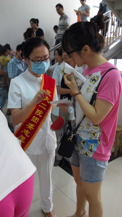 2014年6月9日-13日,院团委以我院皮肤病院门诊大楼正式投入使用为契机,发起门诊志愿服务活动。自6月6日公开征集志愿者以来,各团总支、各团支部和全院团员青年积极响应,共有60余名来自我院临床医技科室和党政后勤部门各个岗位的团员青年参与本次志愿服务活动,共计服务患者达500余人次,极大地方便了患者就诊,促进了门诊高效运转,帮助皮肤病院门诊顺利完成了过渡,受到了广大患者、家属和有关职能部门的高度肯定和赞扬。