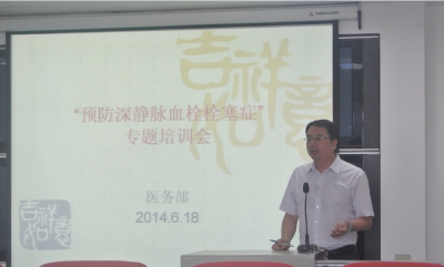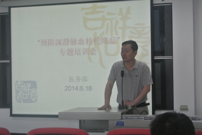 为持续改进医疗质量,保障医疗安全,按照2014年培训计划,6月18日下午,医务部在麻醉手术科示教室组织普通外科、骨科、急诊ICU、重症医学科、血液内科等部分科室全体医生召开“预防深静脉血栓栓塞症”专题培训会,邀请呼吸内科李满祥教授为大家做了专题讲座。高亚副院长出席了会议。会议由医务部主任李小鹏主持。