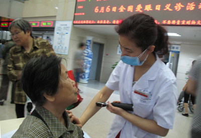 2014年6月6日是第十九个全国“爱眼日”,今年“爱眼日”活动的主题为“关注眼健康,预防糖尿病致盲”。