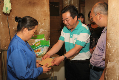 全国劳动模范、银桥乳业集团董事长刘华国捐赠现金和乳品
