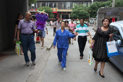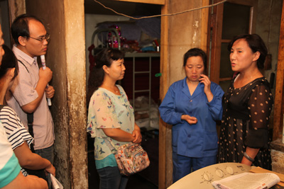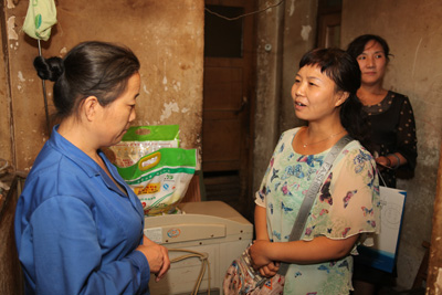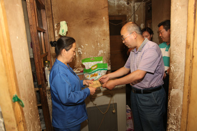 6月6日下午,交大二附院宣传部部长买秋霞和呼吸内科总护士长李家芝代表医院,会同西安市文明委副主任姚全力、莲湖区文明办负责人、银桥乳业集团董事长刘华国、全国道德模范丁水彬以及西安市部分新闻媒体一起,来到居住在文景路的时精勤家中,亲切看望时精勤和她受伤卧床的养子,勉励她坚持信心,勇敢面对生活,克服困难。时精勤和她的养子文文居住在一间不到8平米小屋,仅够放下两张单人床,多年未粉刷的墙壁已是黄中泛黑,三家合用一间厨房,时精勤仅靠在二附院做护理院的微薄收入维持母子俩的生活,家境确实十分清贫。
