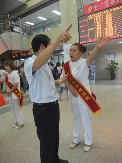 经过团委的统一安排,在今后的一周时间里,每天上午8点至11点,下午14点至16点,志愿者们都会统一身着白大褂、佩戴志愿者绶带,在综合大楼门诊大厅分诊台、导医台、挂号区域、皮肤病院门诊楼内为患者提供就诊路线引导、咨询答疑等服务。