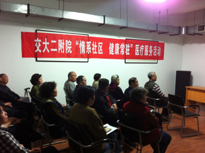 该项活动由党委办公室负责,与党委宣传部共同组织落实,计划将深入各社区和基层单位为群众提供健康讲座与义诊咨询等医疗服务,参与活动的专业技术人员以我院民主党派成员为主。首次活动于2014年5月16日下午启动,由我院心血管内科专家、农工党员张超英教授主讲,丁抗宁护士长配合健康宣教和查体,服务对象为西安市碑林博物馆离退休职工,活动开局良好。当日下午,在碑林博物馆家属院离退休职工活动室,闻讯赶来的离退休职工40多人参加听讲并接受查体。