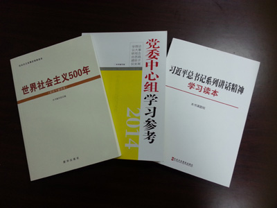 为认真落实院党委2014年工作要点,加强党的思想建设和领导班子学习,进一步深入推进党的群众路线教育实践活动整改工作,近日,我院为党委中心组成员、各党总支、党支部和党委各部门发放了《世界社会主义500年》、《习近平总书记系列讲话精神学习读本》和《党委中心组学习参考》系列学习教育读本,其中《世界社会主义500年》发放至各党支部。同时,院党委要求各党支部要组织党员进行专题学习,并结合当前正在召开的全国“两会”,安排好党员学习收看活动,采取灵活多样的方式引导教育党员用科学的理论武装头脑,指导工作实践,切实把全心全意为人民服务的宗旨落实到医院各项服务工作中。
