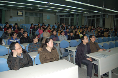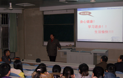 校、院级资深教学督导纪宗正教授从学习态度、学习方法、我院为提高教学质量所做的努力等方面进行了幽默风趣的演讲,他说:“医学是一个非常苦的专业,苦到除了吃饭和8小时睡眠外的所有时间都要用在学习上!”曹罡教授以外科学为例,对临床、科研、学习进行了宏观和微观阐述,希望同学们能学好外科学这门“层次的艺术”。