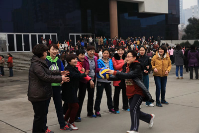 雨后的交大思源广场,空气清新,虽然春寒料峭,但来自29个基层分会的近500名女工的积极、热情使整个广场充满了欢声笑语,氛围热烈。学校工会副主席、女工委员会主任张庆生向姐妹们祝贺节日并宣布庆“三八”女职工趣味运动会各项比赛开始。本次趣味运动会设原地跳大绳、羽毛球拍托乒乓球接力、三人四足接力、横队传球、踢毽子五项比赛。我院来自临床和管理科室的15名女职工参加了全部比赛项目,比赛时,全体队员齐心配合,努力拼搏,最终获得跳大绳、三人四足接力两项一等奖;羽毛球拍托乒乓球接力、踢毽子和横队传球三个二等奖的好成绩。