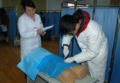 为了加强实习学生实践技能操作能力,提高临床教学质量,按照我院生产实习大出科考试安排,2014年1月17日—18日我院教务部组织进行了本年度生产实习第二轮大出科考试,2008级八年制、2008级七年制、2009级五年制全体实习学生90人参加了考试。