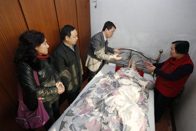 慰问活动中,巩守平副书记等其他人员为闵克民来人安装了病床,并将老人从以前的架子床抬到了赠送的病床上,并现场进行了调试。当看到闵克民在这个移动的床上通过高度调节能照到阳光时,薛孝芳感激的流下了热泪。