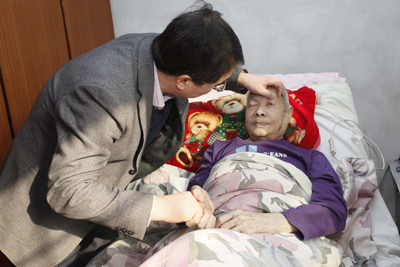 闵克民受伤后多次来到我院治疗,薛孝芳对闵克民46年的照顾与相守,感动了身边很多人,医院历届领导班子及医护人员都十分关心闵克民的病情及生活状况。得知闵克民现在基本上不能动,而普通的床移动很困难,老人连太阳都晒不上,而且身上很容易感染褥疮,了解到这一家人目前的困境,院领导高度重视,为瘫痪在床的闵克民送来医用病床,这种床可以移动,可以调节高度,既方便了薛孝芳护理闵克民,也能在一定程度上减少老人褥疮的发生。又临近元旦,还为老人送来了米面油、豆浆等日常用品。