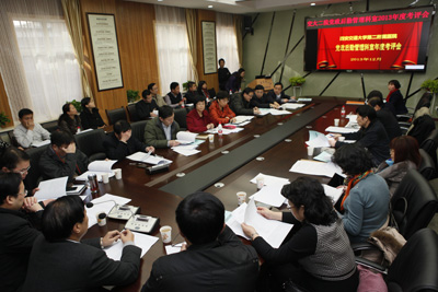 岁末年初,我院年度考核各项工作正在扎实、有序推进。2013年12月31日下午,我院在宗濂会议室召开了2013年度党政后勤管理科室考评会。全体院领导出席、党政后勤管理各科室负责人参加、党委副书记、纪委书记巩守平主持会议。会上党政后勤管理各科室负责人分别对本科室2013年工作进行全面汇报,并结合年度考核办法的新变化,对科室突出的管理单项项目进行重点汇报,院领导和各科室负责人现场考评。