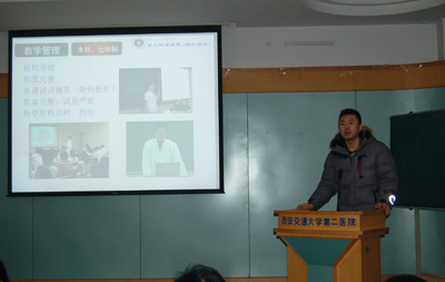 会议上,刘原副院长总结了2013年全院教学工作“十大”成绩:尤其荣获第四届全国高等医学院校大学生临床技能竞赛总决赛二等奖,是我院乃至学校参加该项赛事以来取得的历史最好成绩,校级教师授课竞赛三次获奖总数蝉联学校及医学部第一名。并安排部署了2014年教学建设与改革工作计划,做好我院首批八年制宗濂班教学组织和实施工作,优化协调区段教学内容,整合学科系管理工作,不断完善长学制教学培养模式等。马肖容主任详细说明了本年度新的教学工作考核体系细化到三级学科,指出今年教学工作中存在的问题和相应改进措施。各学科系根据院方本年度教学工作考评体系对本科及研究生教学情况进行自查,整理相关教学支撑资料统一上交至教务部,所有资料由教学督导按照考核细则逐项审查评分,由各学科系代表分别从本科教学管理、授课质量、课程考试、实践培训、研究生培养情况及教学特色等诸多方面对2013年度教学工作完成情况进行总结汇报。各位评委根据学科系汇报情况及教学情况进行考评,充分肯定了各学科系的教学成绩,客观分析不足之处,并提出了一些建设性的意见和建议,要求各学科系更加注重教学,加大宣传力度,提高学生生源质量,培养学生创新能力,积极推进教学改革项目,整合实践教学资源,逐步提升教学水平。