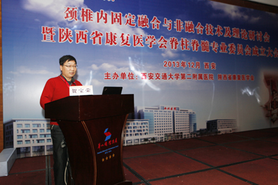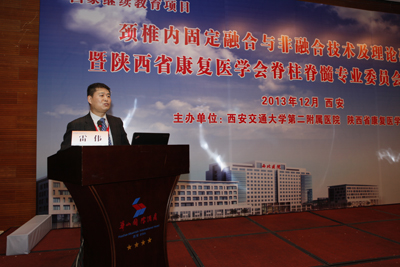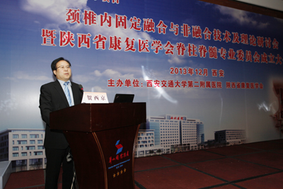 在简短的开幕式后,大会进行了精彩的专题讲座。重点就颈椎病目前最前沿的治疗方法措施及技巧进行了广泛而深入的交流和探讨。会议期间贺西京院长作了《下颈椎人工颈椎复合体的研制与应用》的专题报告,展示了人工颈椎最新研究成果,该研究成果有望于近期应用于临床。李浩鹏教授和王栋副教授分别发表题为《上颈椎融合术后对颈椎活动度影响的研究》和《前路减压可吸收螺钉内固定治疗颈椎病的临床研究》的报告,报告得到了参会人员的广泛认可和积极反响。