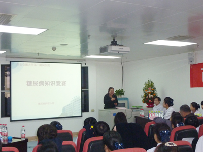 2013年12月18日下午,在门诊大楼六楼麻醉科示教室,由糖尿病护联小组举办的“糖尿病知识竞赛”在激烈紧张的进行着。参赛选手共有五个代表队,即内科队、外科队、干部中医队、感染整形队及眼耳儿代表队。这次竞赛邀请到的嘉宾评委有:护理部副主任刘红梅、孔德玲,内分泌科主任谢璇,干三病区主任杨渭临及各片区科护士长。