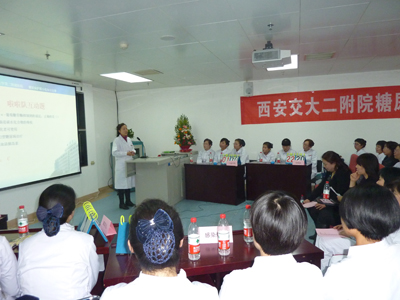 近年来,糖尿病的发病率迅猛增长。据今年9月4日发表在《美国医学会杂志》上的一则研究披露,中国成年人糖尿病患病率高达11.6%,而糖尿病前期的患病率高达50.1%。而就中国人口总体而言:知道自己情况的糖尿病患者比例为30.1%,接受糖尿病治疗的患者只有25.8%,血糖得到了适当控制的患者只有39.7%。因此糖尿病的预防和控制形势非常严峻。而有研究显示:在非糖尿病科治疗的糖尿病患者近1/3是首次发现糖尿病;医院住院患者中约有10%的患者同时患有糖尿病;糖尿病已成为院内住院患者中各科室第四大最常见的伴随疾病。糖尿病不仅高发,而且危害严重,它所引起的多种急慢性并发症,是导致患者致残、致死的主要原因。因此非内分泌科的护理人员亦应为糖尿病患者提供最基本的护理及健康教育。糖尿病护联小组所开展的对全院护联小组成员就糖尿病相关知识及技能的培训工作就显得尤为必要和重要。