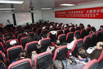 为深入推进党的群众路线教育实践活动,激发支部党员牢固树立宗旨意识,心系患者,服务群众,12月27日下午,我院门诊对外服务与防保医保党支部携手机关一支部、药剂科党支部、财务科党支部在综合大楼六楼会议室举办了以“心系患者跟党走”为主题的演讲比赛。院党的群众路线教育实践活动领导小组副组长巩守平副书记出席,四个支部的80余名党员观看比赛。