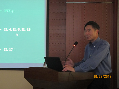 2013年10月23日下午,应我院呼吸内科孙秀珍教授的邀请,美国耶鲁大学医学院变态反应与临床免疫分部Zhou Zhu教授及TaoZheng教授来我院进行学术交流。二位学者在国际变态反应学领域享有盛誉,多次应邀在全国变态反应学术会议上讲座,是国内多位变态反应学者的良师挚友。他们在我院进行了题为“支气管哮喘负向调控分子及相关研究进展”及“变应性皮炎与哮喘的关系”的演讲。我院30多名相关学科的教授、研究生聆听了精彩的讲座并热烈讨论,大家一致认为:讲座内容传递了变态反应学国际前沿知识,为我们今后的研究工作提供了新思路新方法,受益匪浅!