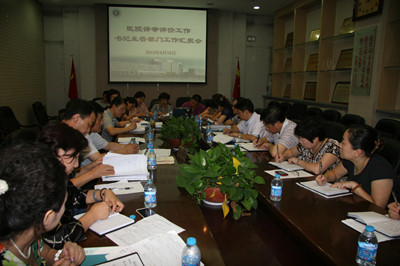 2013年9月18日上午,我院党委在二楼会议室就医院评审评价工作召开三位书记主管部门工作检查汇报会,韦俊荣书记,巩守平、黎一鸣副书记,党委办公室、纪委监察室、党委宣传部、工会、团委、离退休职工管理办公室、学生工作部、人力资源部、审计室和计划生育办公室正副职,以及医疗质量控制办公室李西英主任和创优办李小鹏主任参加会议。会议由巩守平副书记主持。