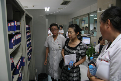 副院长高亚教授代表医院对检查组的到来表示欢迎,并强调了我院对医保管理工作一贯重视,要求各部门积极配合本次检查。芦巧玲主任从医院概况、医保组织机构和基础管理、市医保患者收治情况、医疗保险政策执行、医保政策的宣传以及实时结算系统的运行等方面向考核组进行了汇报。随后考核组随机抽出2012年9月份市医保20份住院病历和门诊特治特检单逐一查阅,并深入医保办、门诊药房、耳鼻咽喉头颈外科病院以及肿瘤病院进行现场检查,并向患者发放医保政策的问卷调查,了解我院市医保政策的落实执行情况和患者对医保服务的满意程度。