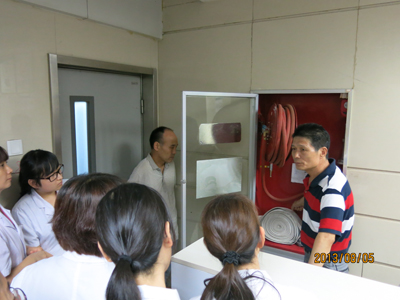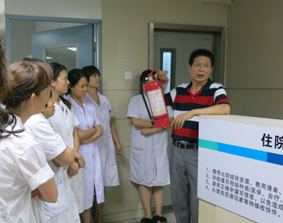 周康利主任通过鲜活的案例为大家讲解了贯彻消防法规、落实消防责任、维护消防安全、保护消防设施等方面的理论知识,并根据医院的特点,分别介绍了医院报警电话、建筑物起火的燃烧过程、消防通道的位置、灭火栓和灭火枪的使用方法等。