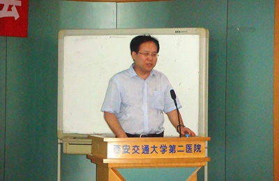 两位教授此次不辞辛劳来陕为我院传经送宝,带来了内容精彩、详实的讲座,开拓了临床医师及医学生的视野,同时进一步加强了我院同国内外知名专家学者的学术交流与联系。通过学习,大家对TBNA技术的发展历史、现状、操作要点以及肺活检术的新进展有了更为深入的了解和认识。讲座结束后,贺西京院长代表我院对两位教授的专程来访表示衷心的感谢,并为Ko-pen Wang教授和李强教授颁发了我院客座教授的聘书,希望两位教授今后能与我院密切联系,欢迎他们经常回来指导工作。